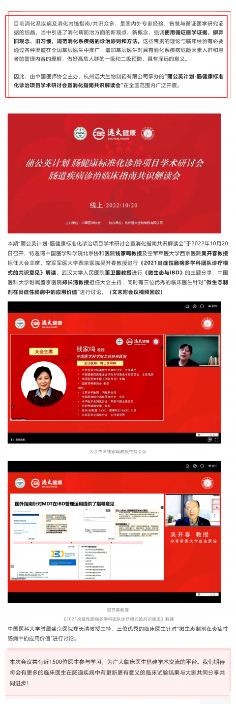 由中國醫(yī)師協(xié)會(huì)主辦,杭州遠(yuǎn)大生物制藥有限公司承辦的“蒲公英計(jì)劃-腸健康標(biāo)準(zhǔn)化診治項(xiàng)目學(xué)術(shù)研討會(huì)暨消化指南共識(shí)解讀會(huì)”在全國范圍內(nèi)廣泛開展。